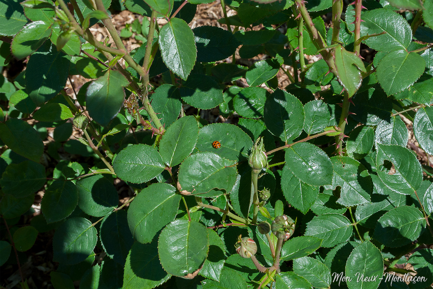 Jardin Wilson, roseraie Delbar : les coccinelles veillent sur les bourgeons