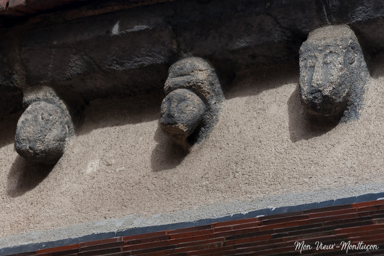 Église Saint-Pierre : corbeaux sculptés visibles côté chevet, vers la porte secondaire, rue des Cinq Piliers