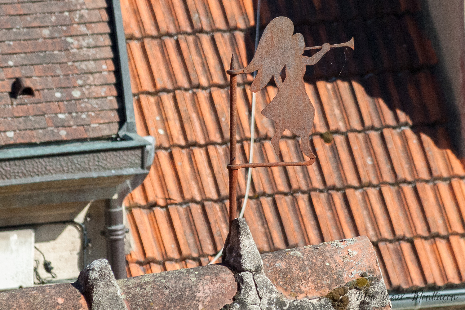 2 bis rue du Petit Château : ange à la trompette vu de l'esplanade du Vieux Château