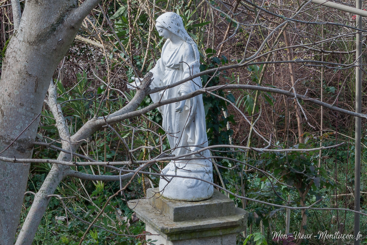 2 rue de la Fontaine : selon la saison, on peut plus ou moins apercevoir cette statue de la Vierge par l'esplanade du MuPop