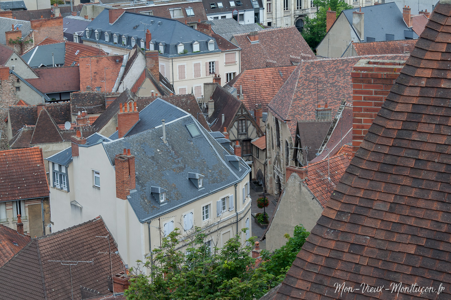 Quartier Saint-Pierre : la place et l'église vues du donjon du Vieux Château
