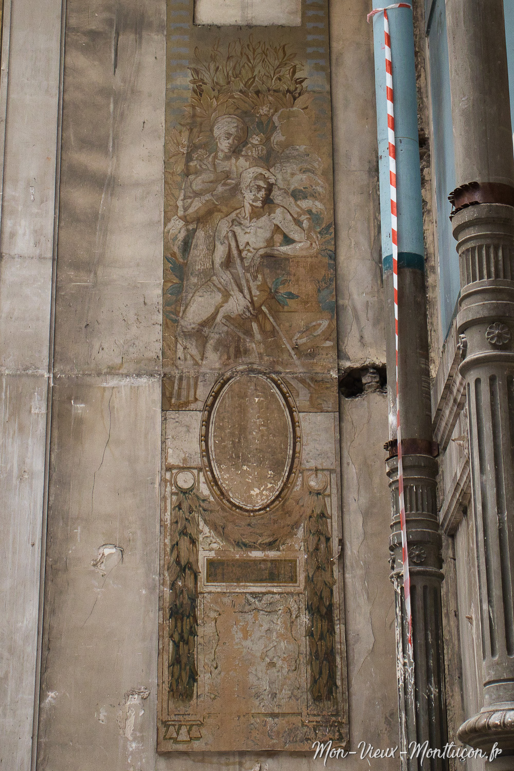 Travaux à l'hôtel de ville : fresque verticale "Famille" des frères Barberis