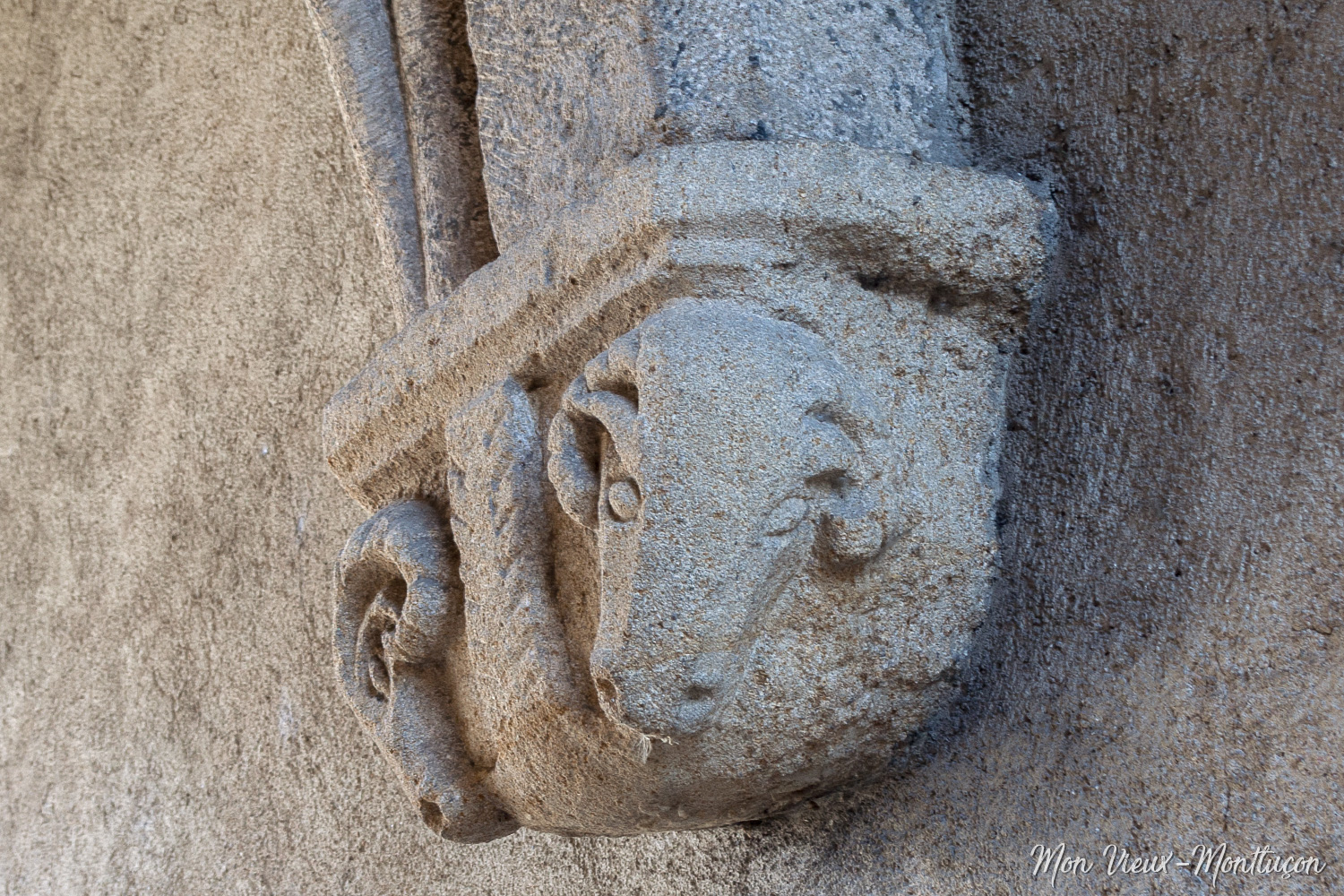 Passage du Doyenné : corbeau sculpté de béliers où repose un des arcs de la voûte