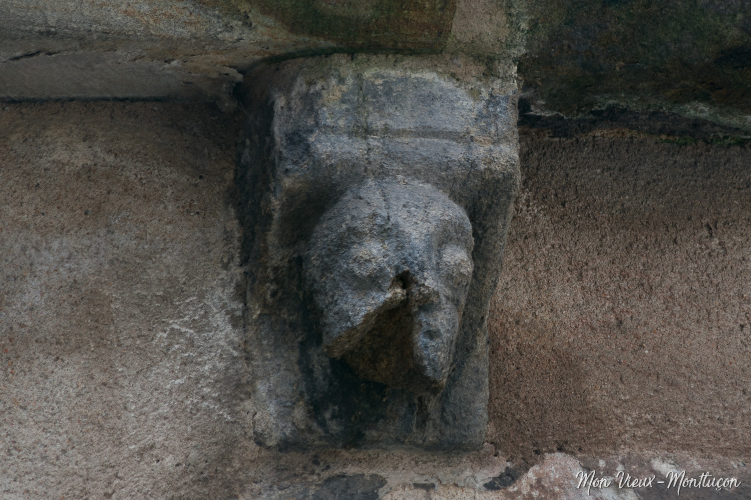 Église Saint-Pierre : corbeau sculpté visible côté chevet, vers la porte secondaire, rue des Cinq Piliers