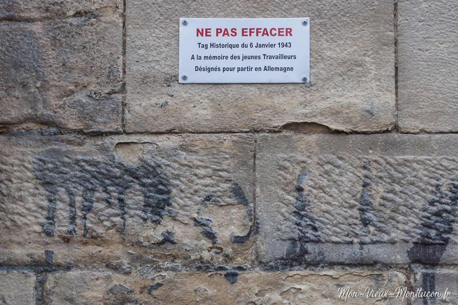 Mur du lycée Jules Ferry : "Jeunes ne partez pas – rejoignez les FTP" - 6 janvier 1943