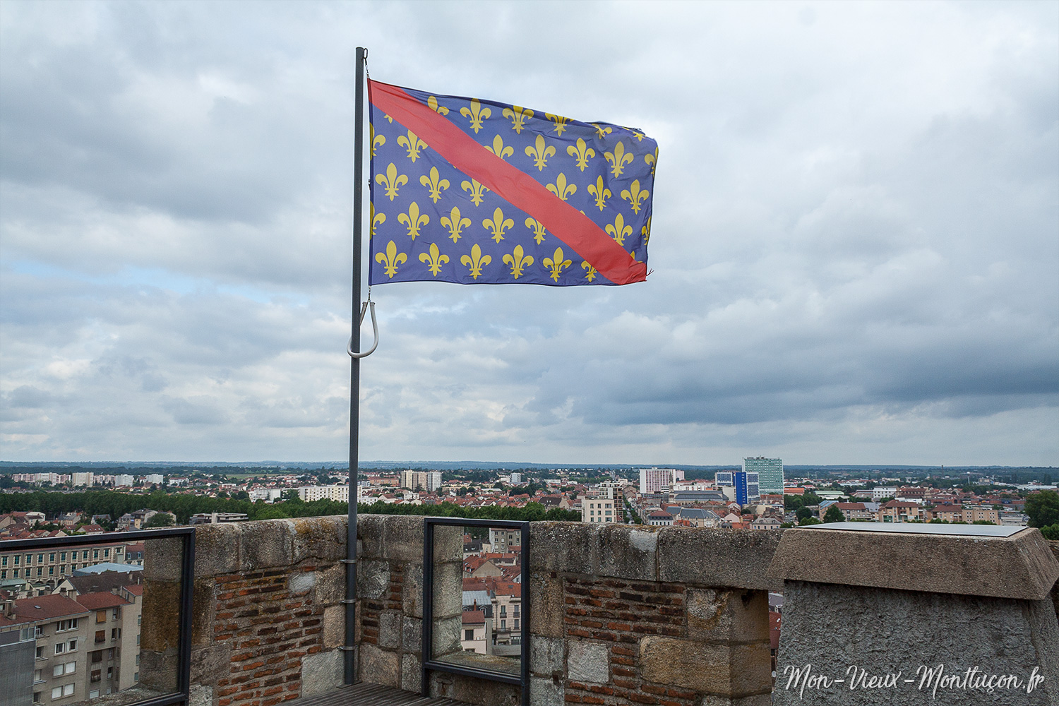 Le drapeau bourbonnais veille sur la ville du haut du donjon du Vieux Château