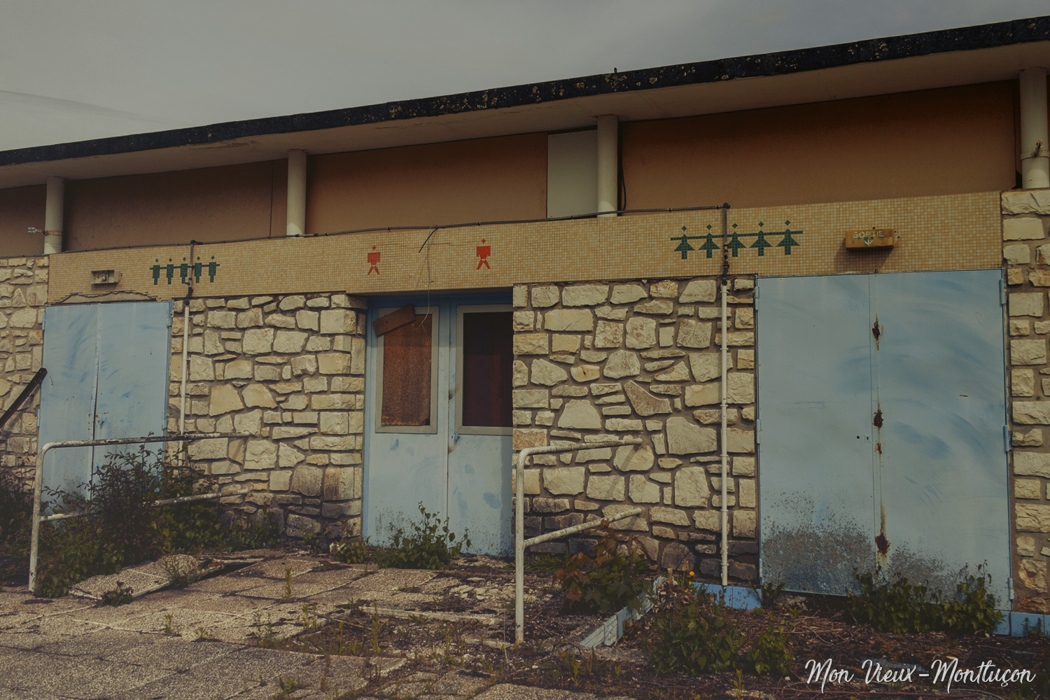 Restes de la piscine Saint-Jean : l'accès aux vestiaires avec le local du maître-nageur au centre
