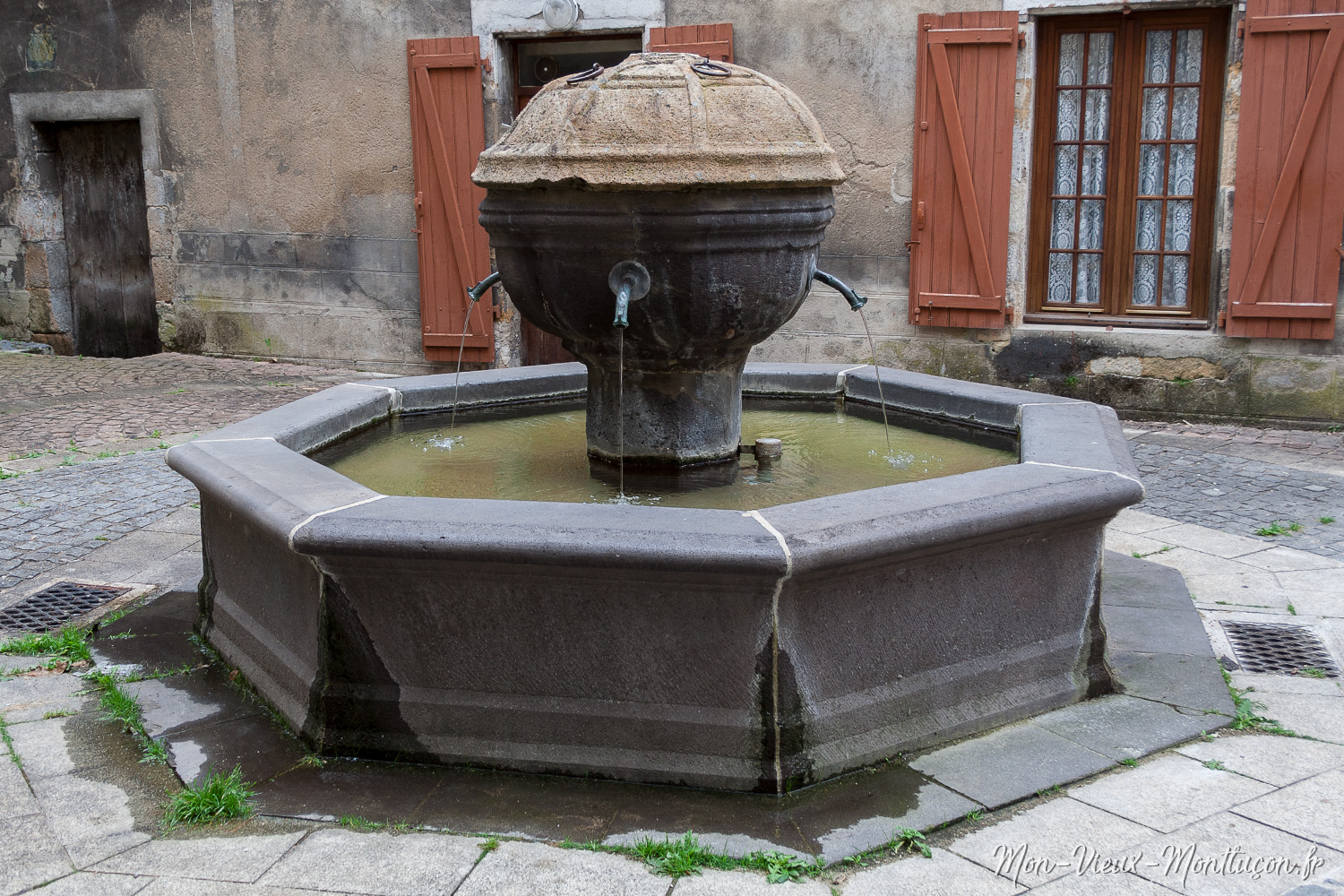 Place de la Fontaine : sa fontaine, son bassin octogonal et ses fuites