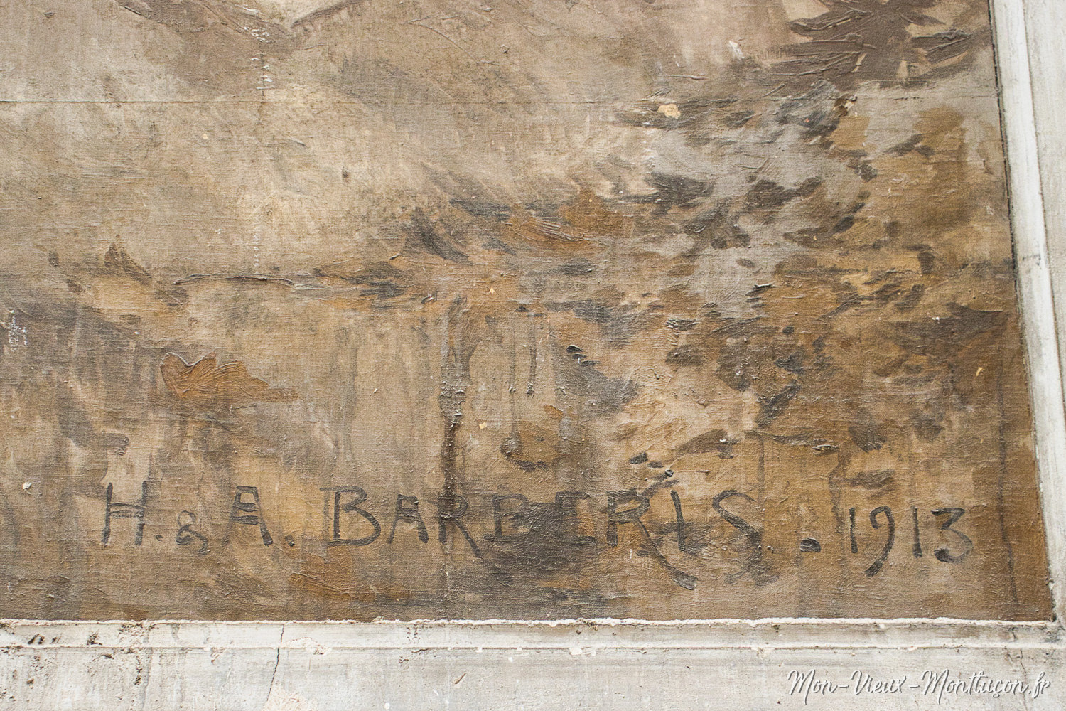 Travaux à l'hôtel de ville : fresque murale , signature des frères Barberis, Henri et Antoine