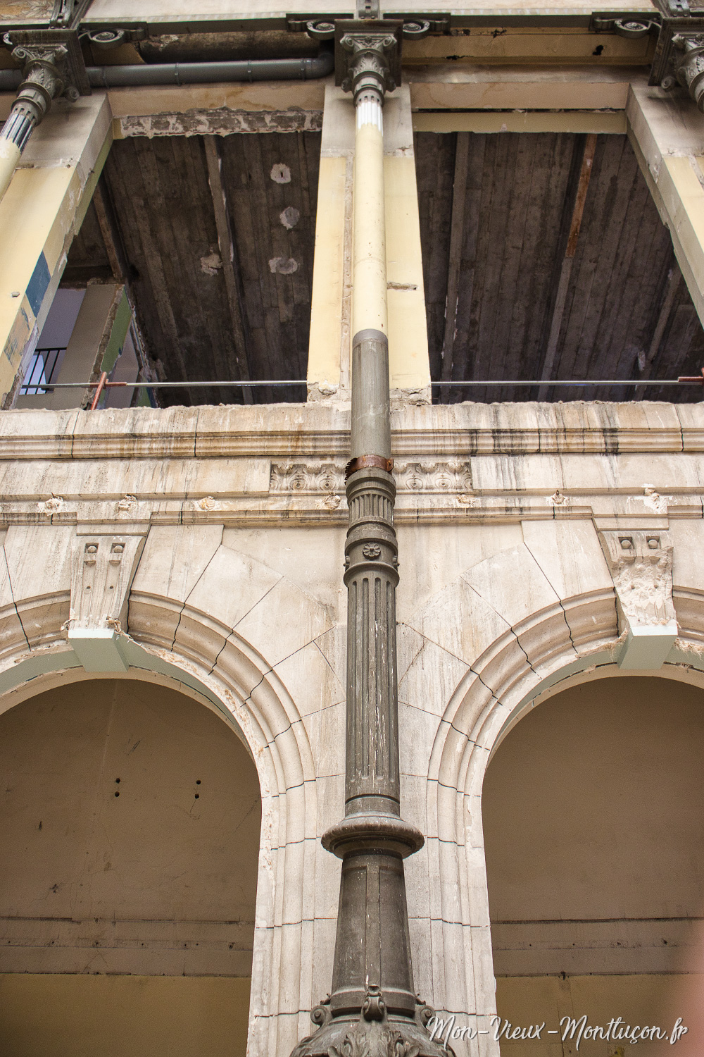 Travaux à l'hôtel de ville : une des nombreuses colonnes en fonte qui soutient la structure