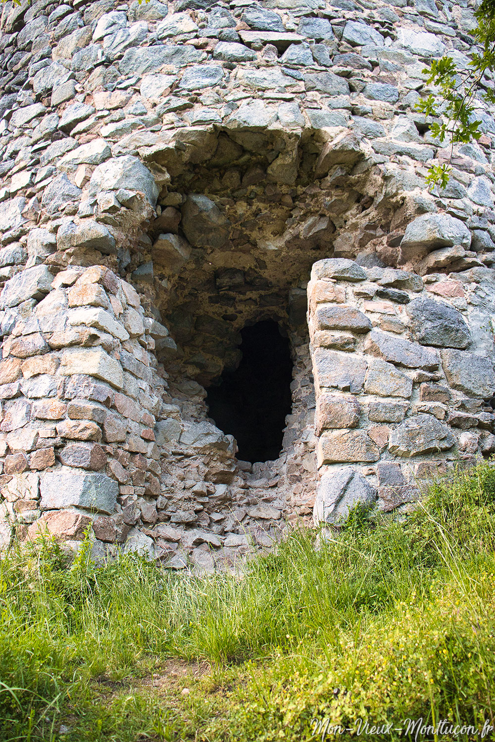 Donjon du château de l'Ours : accès au rez-de-chaussée creusé dans la muraille
